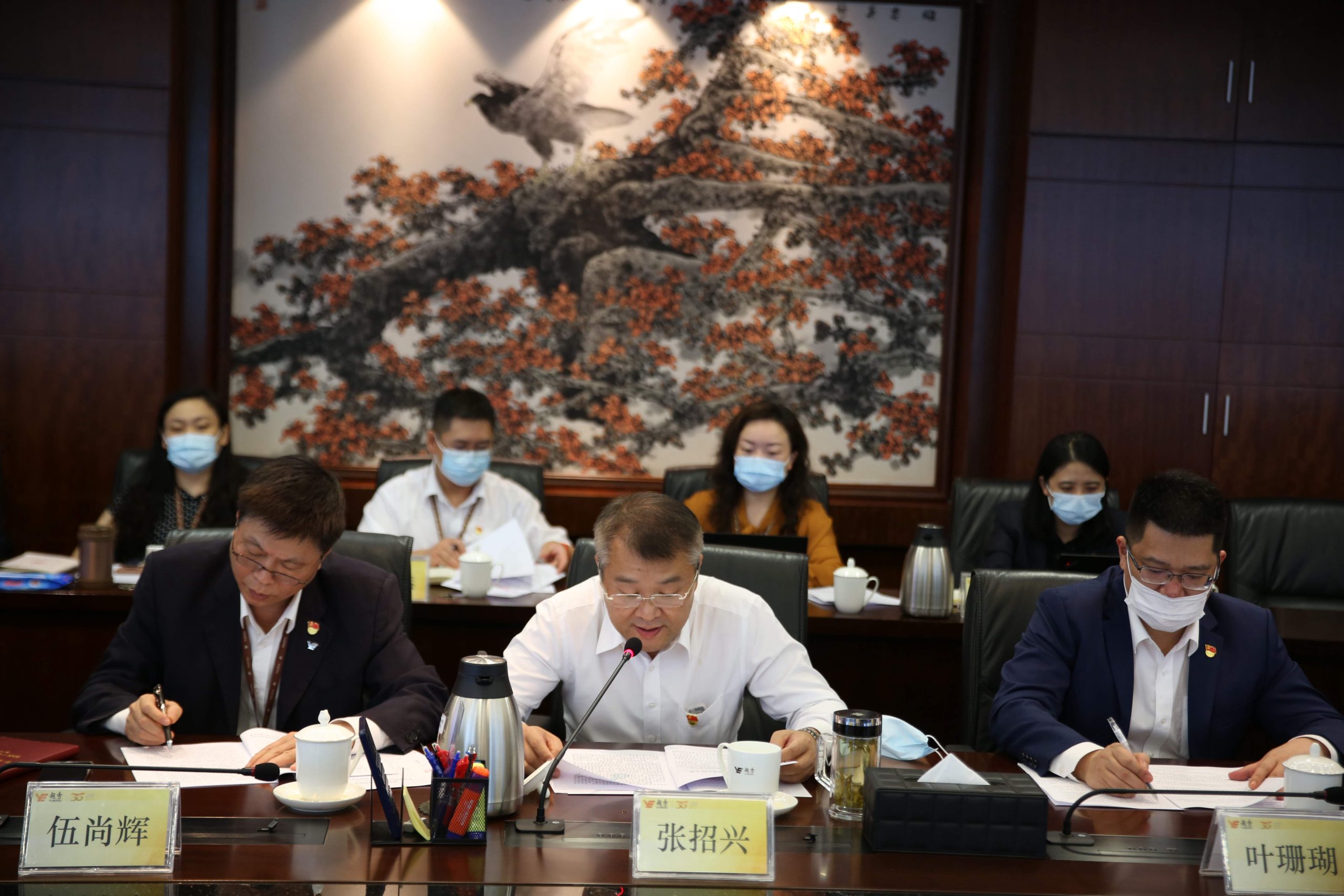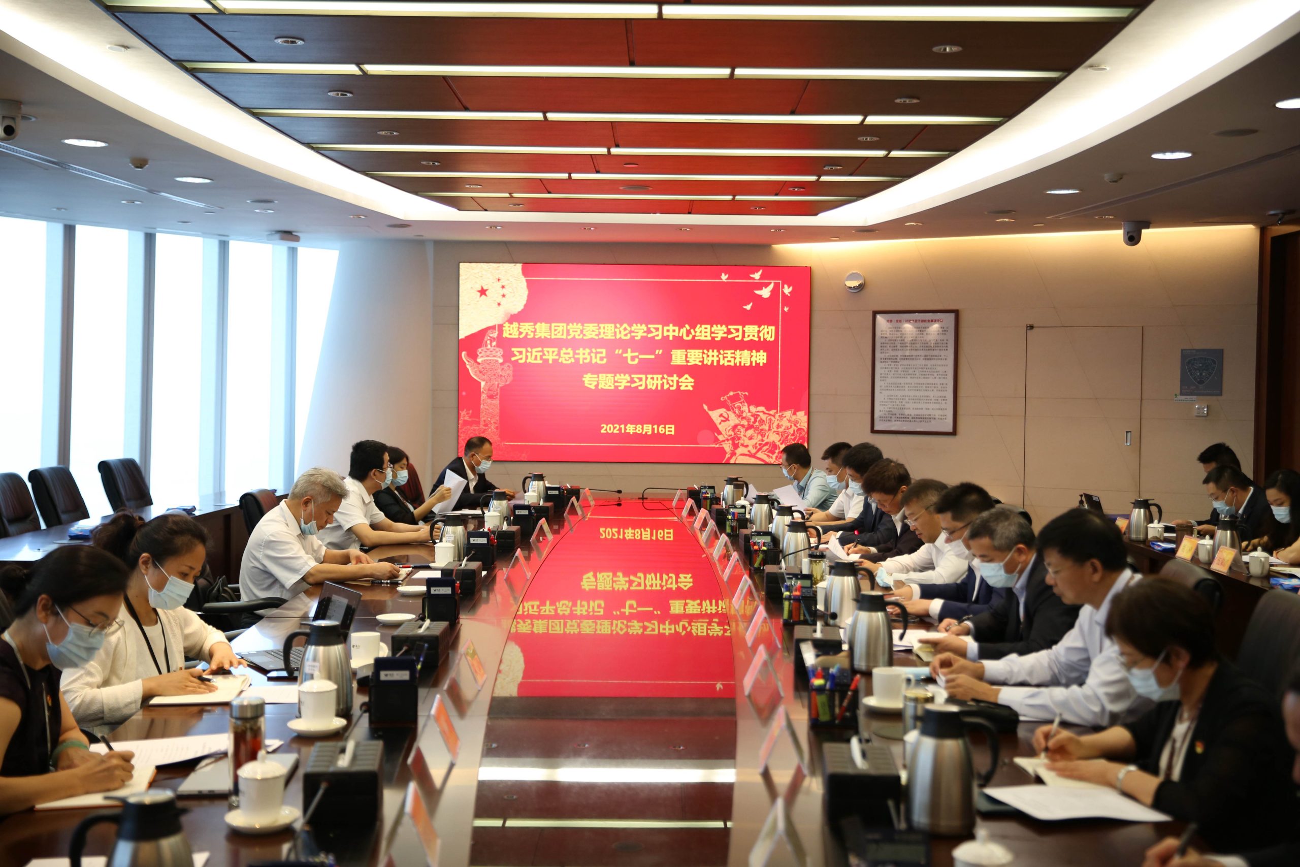 8月16日,越秀集团召开党委理论学习中心组学习贯彻习近平总书记“七一”重要讲话精神专题学习研讨会。市委党史学习教育领导小组第9巡回指导组组长王少强一行莅临指导,集团党委书记、董事长张招兴主持会议并作总结讲话,集团领导班子成员、集团党委党史学习教育领导小组及办公室有关成员等参加会议。